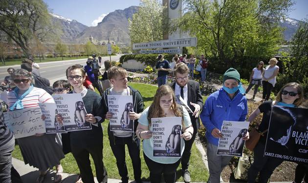 | BYU students protest the role of honor code investigations follow the reporting of sexual assaults among the university's students. |